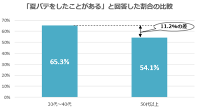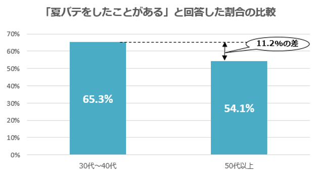 また、50代以上の方は30~40代の方と比較して、夏バテを経験したと回答した方が11.2%低い結果となりました。