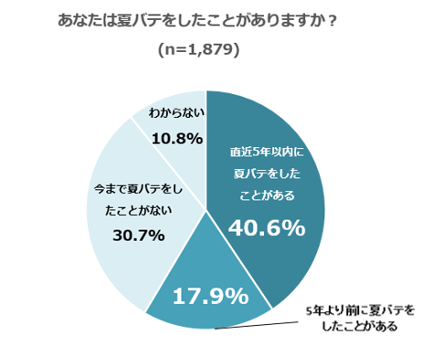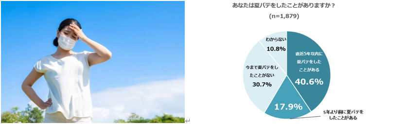Ⅰ.『あなたは夏バテをしたことがありますか?』という質問に「直近5年以内に夏バテをしたことがある」と回答した方は40.6%、特に若年層ではその割合が高まっていることが判明。