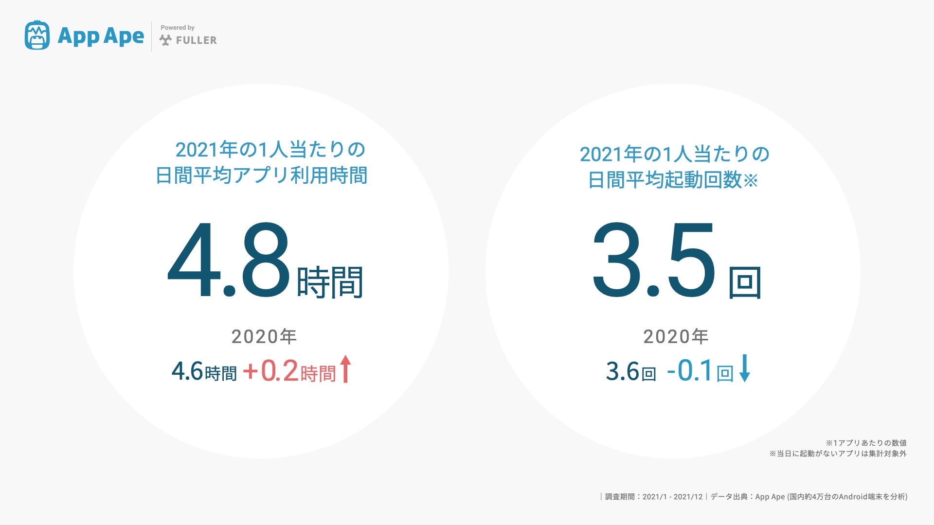 1日のうちユーザーがアプリを利用している時間の平均は、過去最長の4.8時間となりました。