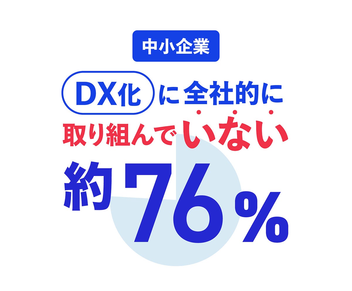 ・全社的にDX化に取り組んでいない中小企業は約76%。いまだ中小企業のDX化は進んでいない現状。