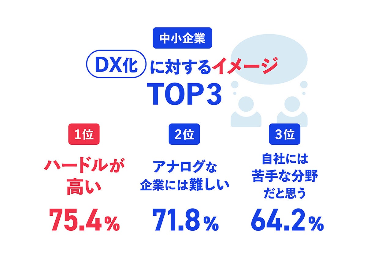 ・DX化に対するイメージTOP3は、1位「ハードルが高い(75.4%)」2位「アナログな企業には難しい
