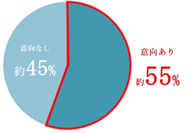 TOPIC1でDX化に対し「全社的に取り組んでいる」と答えた回答者以外に、今後のDX化に対する意向の有無を調査したところ、半数以上の約55%が「意向あり」と回答しました。