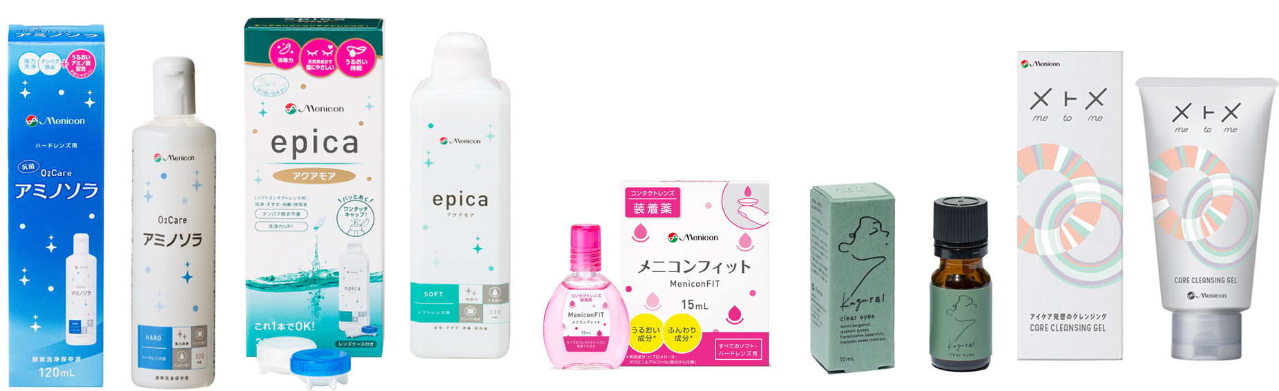 ※コンタクトレンズ用ケア用品は、メニコングループ販売店「Miru」店頭でメニコン優待券をご利用いただきお買い求めいただけます。