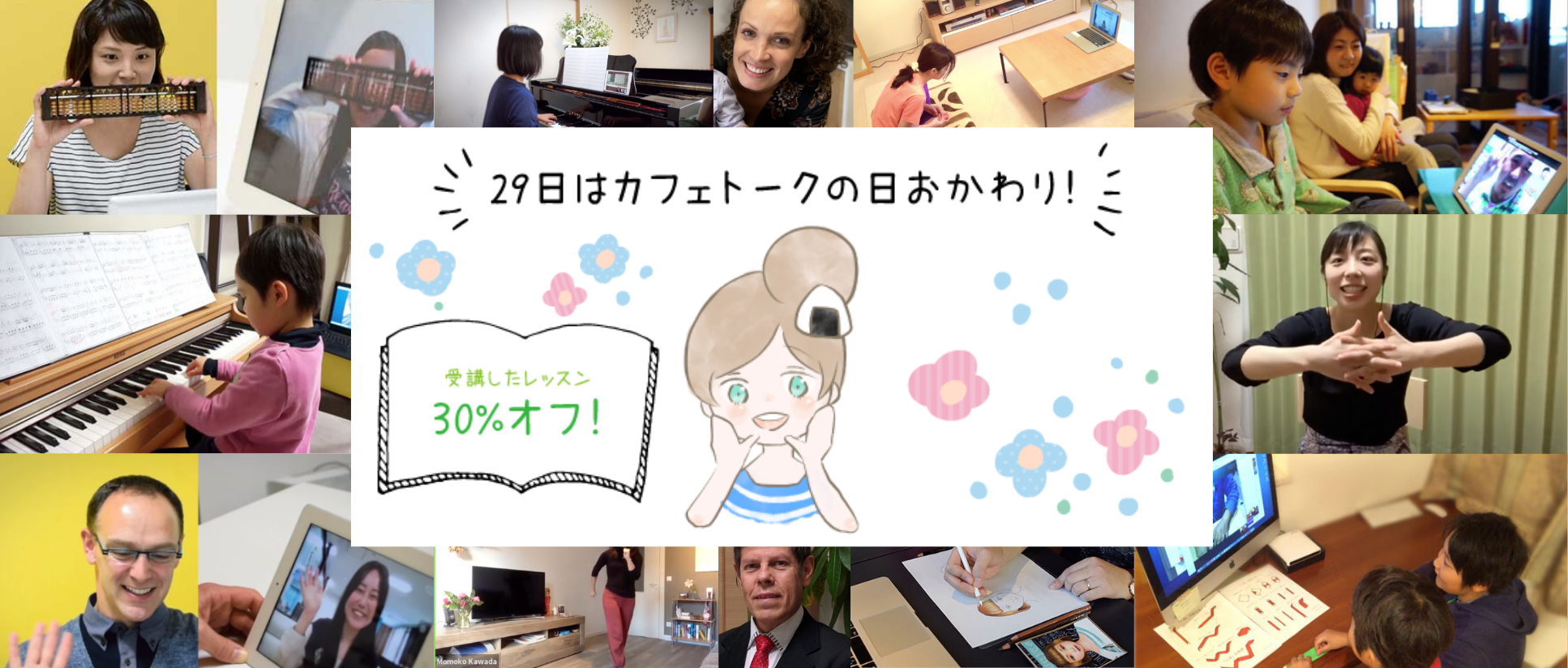 日本最大級オンライン習い事サイト「カフェトーク」が毎月19日と29日に実施している30%ポイントバックキャンペーンです。