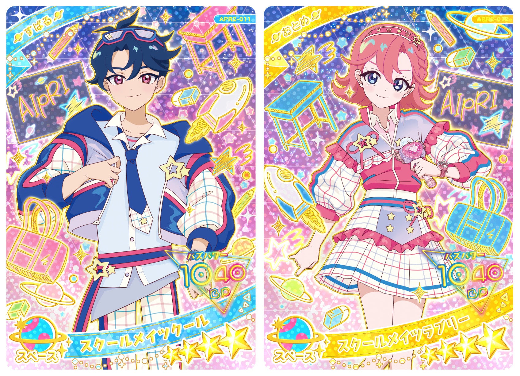 「リング2だん」では新キャラクター「すばる」と「おとめ」がアイプリカードに登場しゲームの中でプレイできるようになります。新たに公開された「すばる(スクールメイツクール)」「おとめ(スクールメイツラブリー)」をはじめ、様々な新作コーデのアイプリカードがラインアップされています。