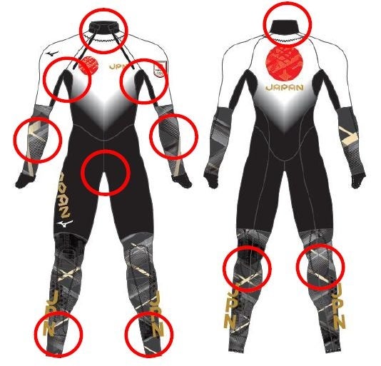 今回のレーシングスーツには、動き易さを追求しつつ空気抵抗を減らす新たなニット素材を採用しています。スピードスケートの風洞実験をもとに、ショートトラックの滑走速度域で抵抗を抑えるのに有効な素材になっています。
