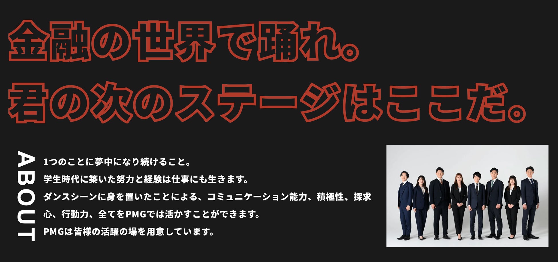 ピーエムジー株式会社はダンス経験者を対象にした専用の採用WEBサイトをオープンし、「マイナビDANCEALIVE 2025 FINAL」のスポンサーを皮切りにダンスシーンから積極的な採用を始めダンスシーンとの取り組みを行ってまいります。