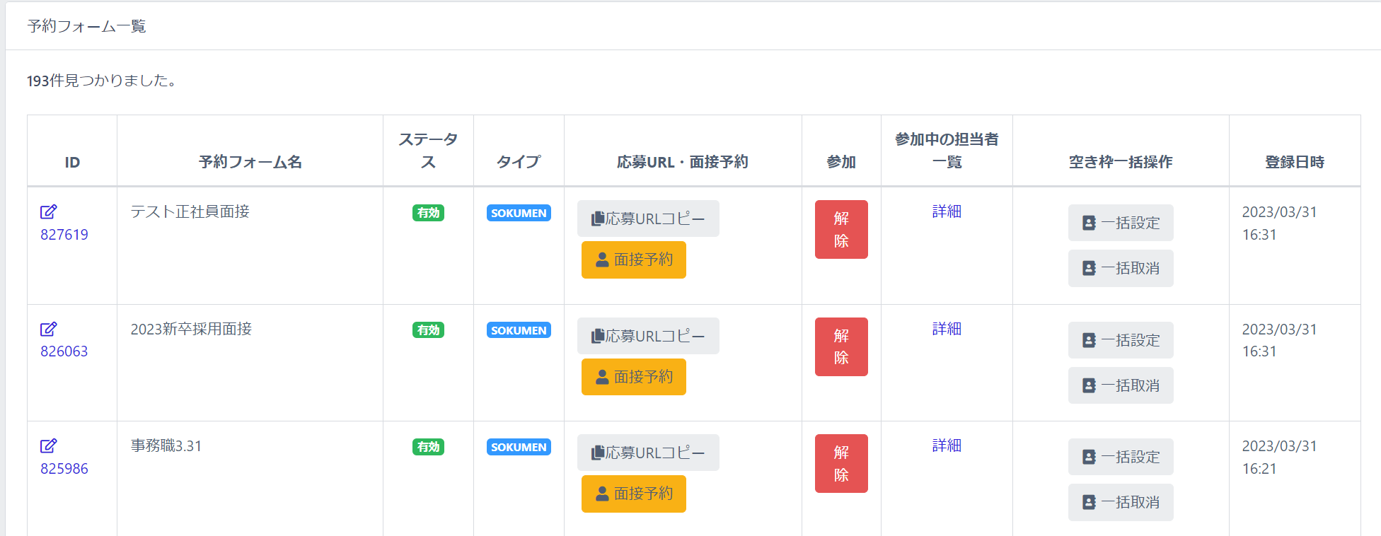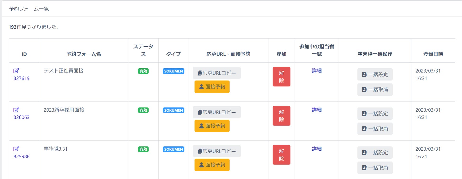 ※予約フォーム一覧から面接予約ボタン押下で日程調整画面に遷移