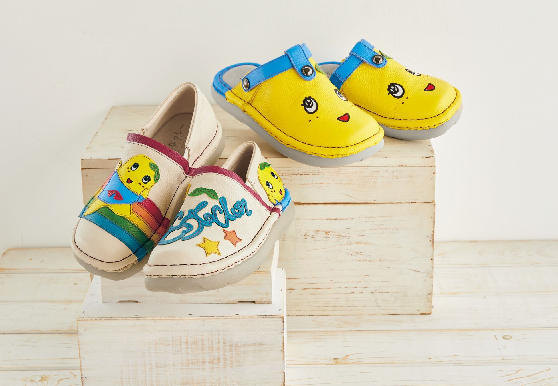 船橋市非公認ご当地キャラとして人気を集める、梨の妖精「ふなっしー」が「Estacion」とコラボし、本格的な革靴となって新登場。 本シリーズは、見ているだけで幸福感に包まれるような、かわいさ溢れる「ふなっしー」と鮮やかなカラーを施したBELLUNAオリジナルデザインの全3タイプ展開にて販売開始しました。牛革仕立ての柔らかな素材に加え、中敷とソールはふかふかな5層のクッションになっているため、はき心地も抜群です。