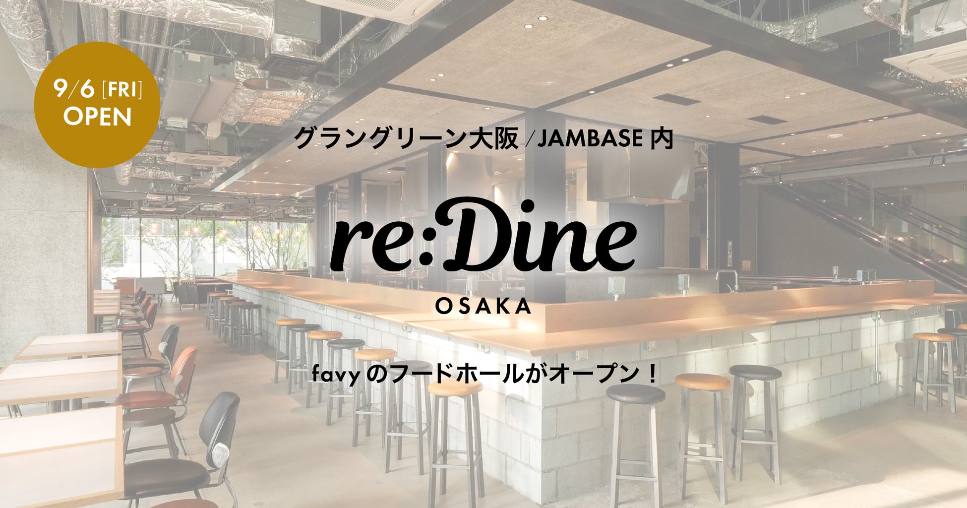 東京都内を中心にシェア型フードホールの開設・運営を行う株式会社favy(東京都新宿区・代表取締役高梨巧)では、2024年9月に、関西初のシェア型フードホールとしてオリックス不動産株式会社様が運営するグラングリーン大阪北館1階の『JAM BASE』に「re:Dine 大阪」をオープンいたしました。