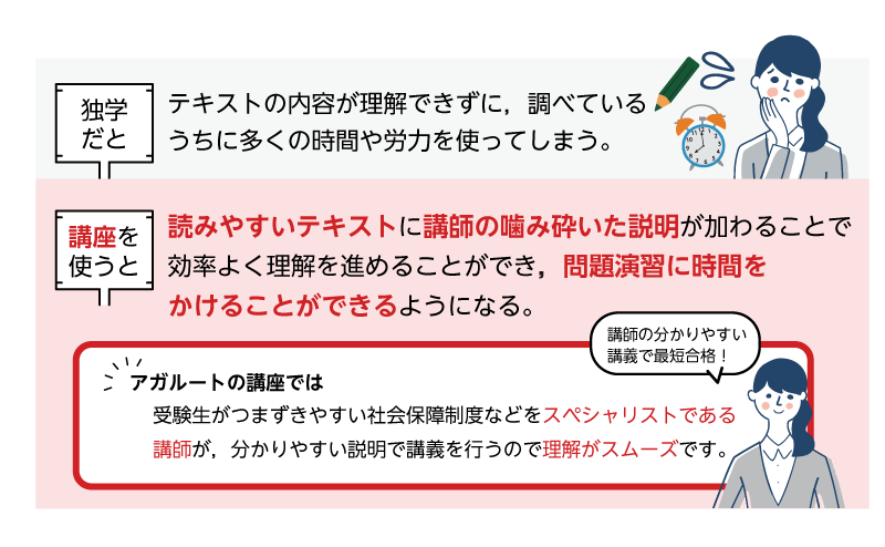 頻出知識を中心に網羅的にまとめられたテキストと講義で,合格ラインに乗る知識がしっかり身に付きます。