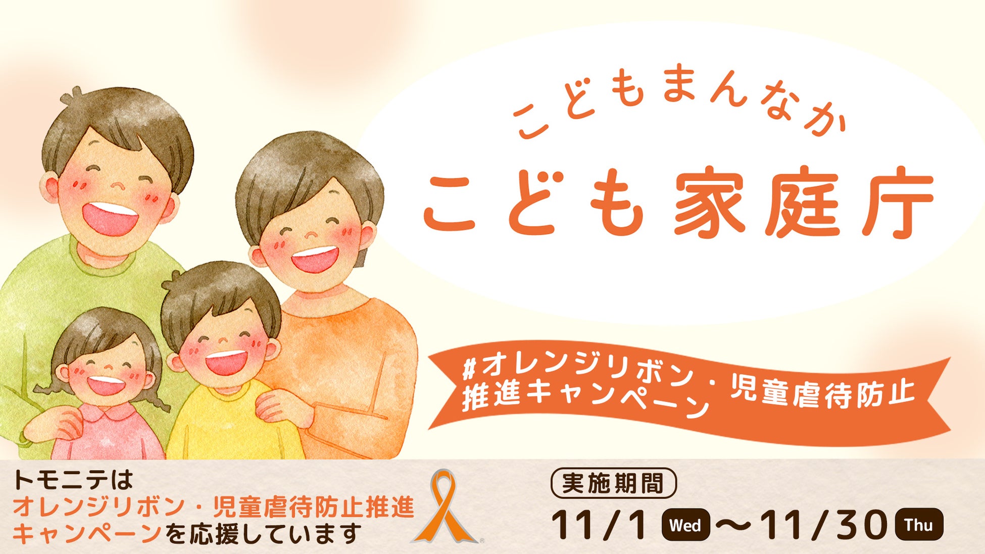 『トモニテ』がこども家庭庁とコラボし「児童虐待防止」の啓発コンテンツを配信。こどもの虐待がない社会を目指す「オレンジリボン・児童虐待防止推進キャンペーン」を応援