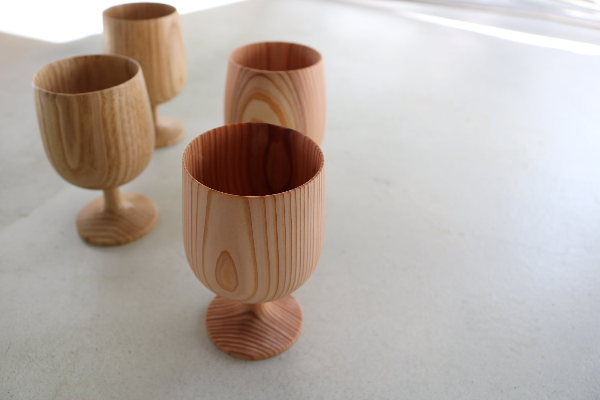 ③一環舎 「木のミニランタン」づくりワークショップ、木のワイングラス、ゴブレット、おちょこなど木工製品