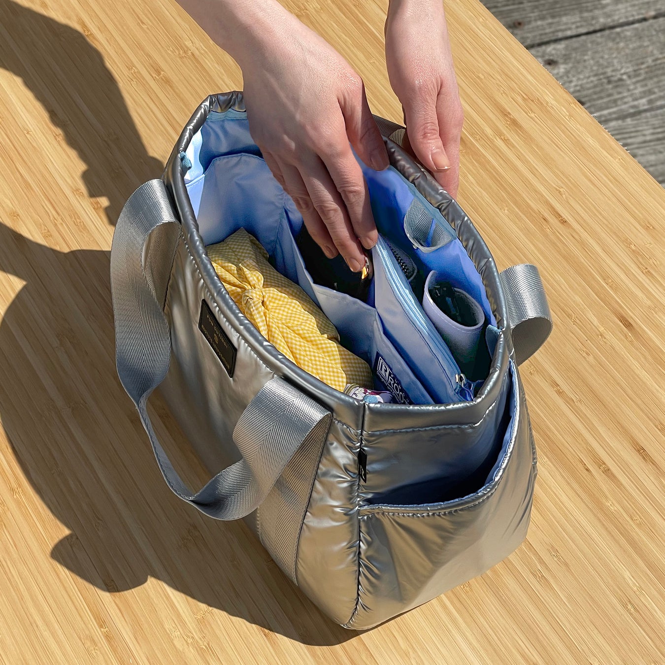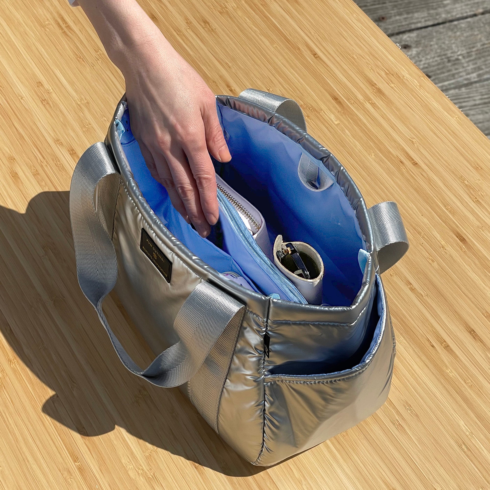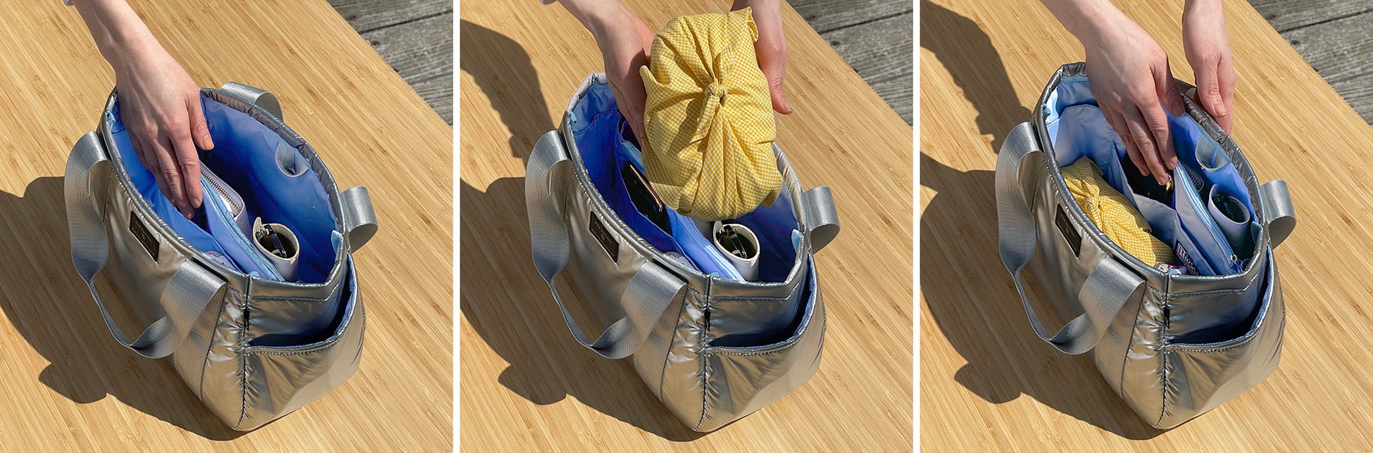 ■バッグ自体に自立性があり、荷物を立てて収納できる絶妙なサイズ感!出し入れもスムーズ。