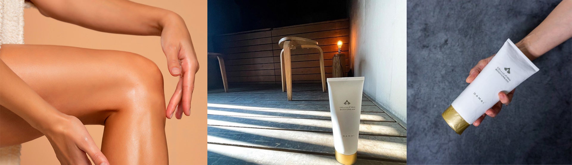ボディクリームは、バスタイム後など、少し身体が湿った状態での使用を推奨しています。特にバスタイム後は、バニリルブチルが体の水分に反応し、心地よく温めてくれます。しっかりと温め&保湿をしてくれるため、サ活後の乾燥対策として◎使用箇所は冷えやむくみが気になる部分があれば部分的にアプローチをして美しいお肌へ、全身くまなく巡らせるには、ダマイのドレナージュメソッドに沿った塗布方法がおすすめです。美容成分の配合やテクスチャーにもこだわっています。巡りを整え、排出を促してくれる成分を配合しているので、 毎日塗り続けることで溜め込まない身体作りへ導きます。ご自宅で寝る前に少しだけケアの時間をとってあげれば ご自宅での“寝ながらサ活"も叶います。
