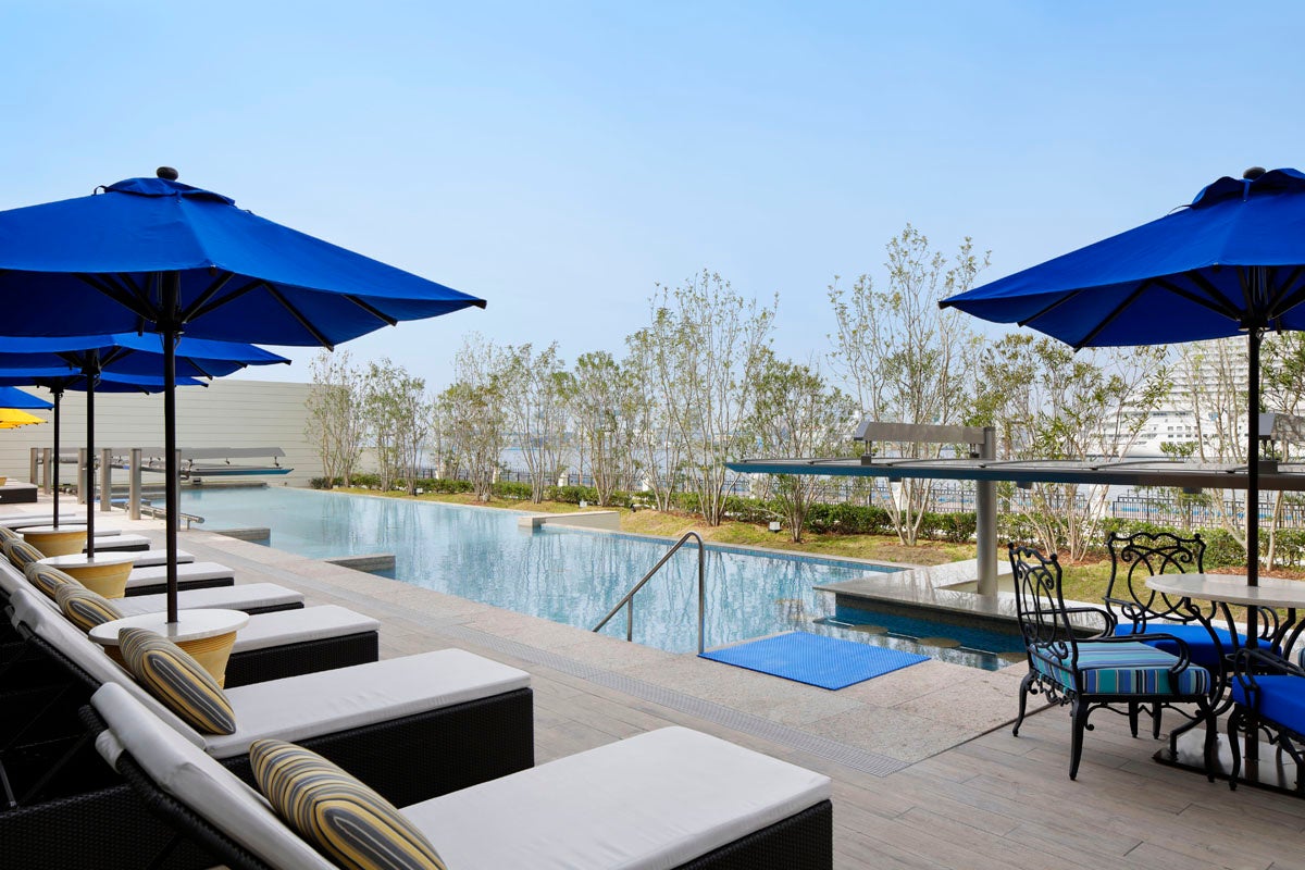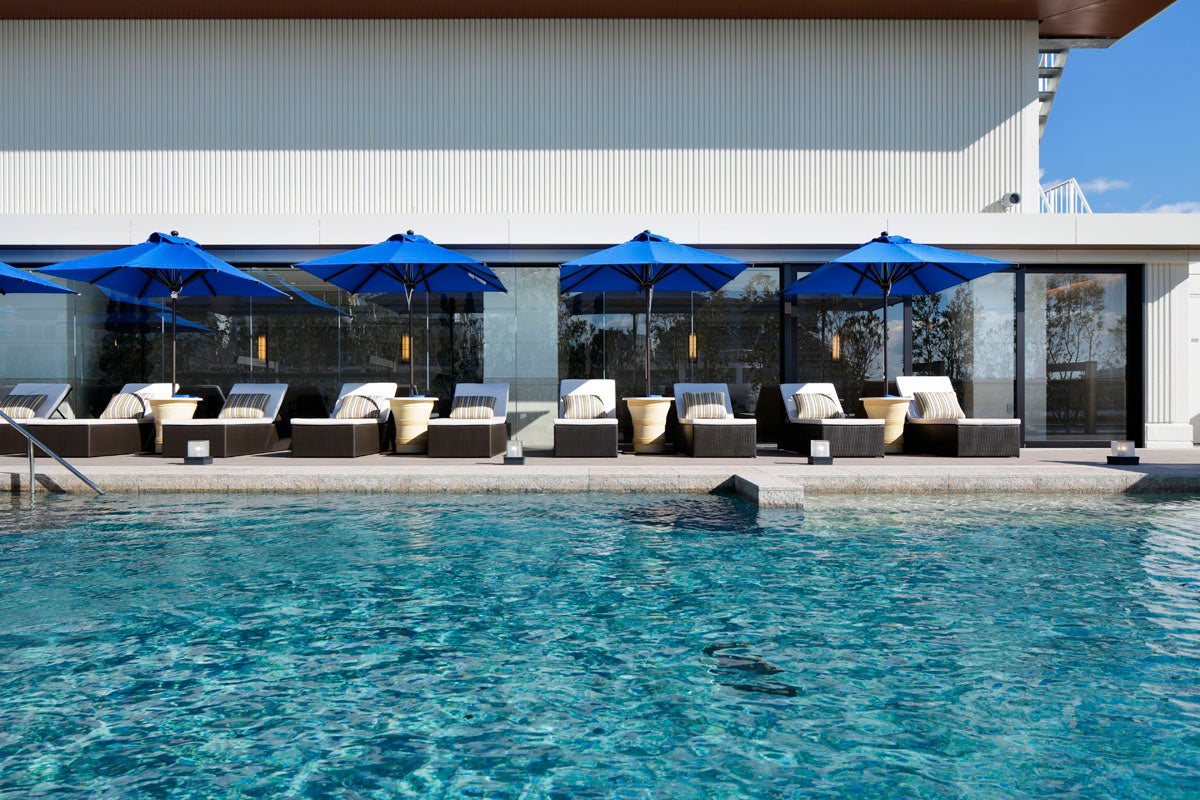 泡が噴き出すマッサージベッドや、半身浴をしながら、移ろいゆく神戸港の景色が愉しめるアクアシートなどがあり、リゾート気分を味わえる屋外プールです。昇温可能な温水プールのため、季節を問わずご利用いただけます。