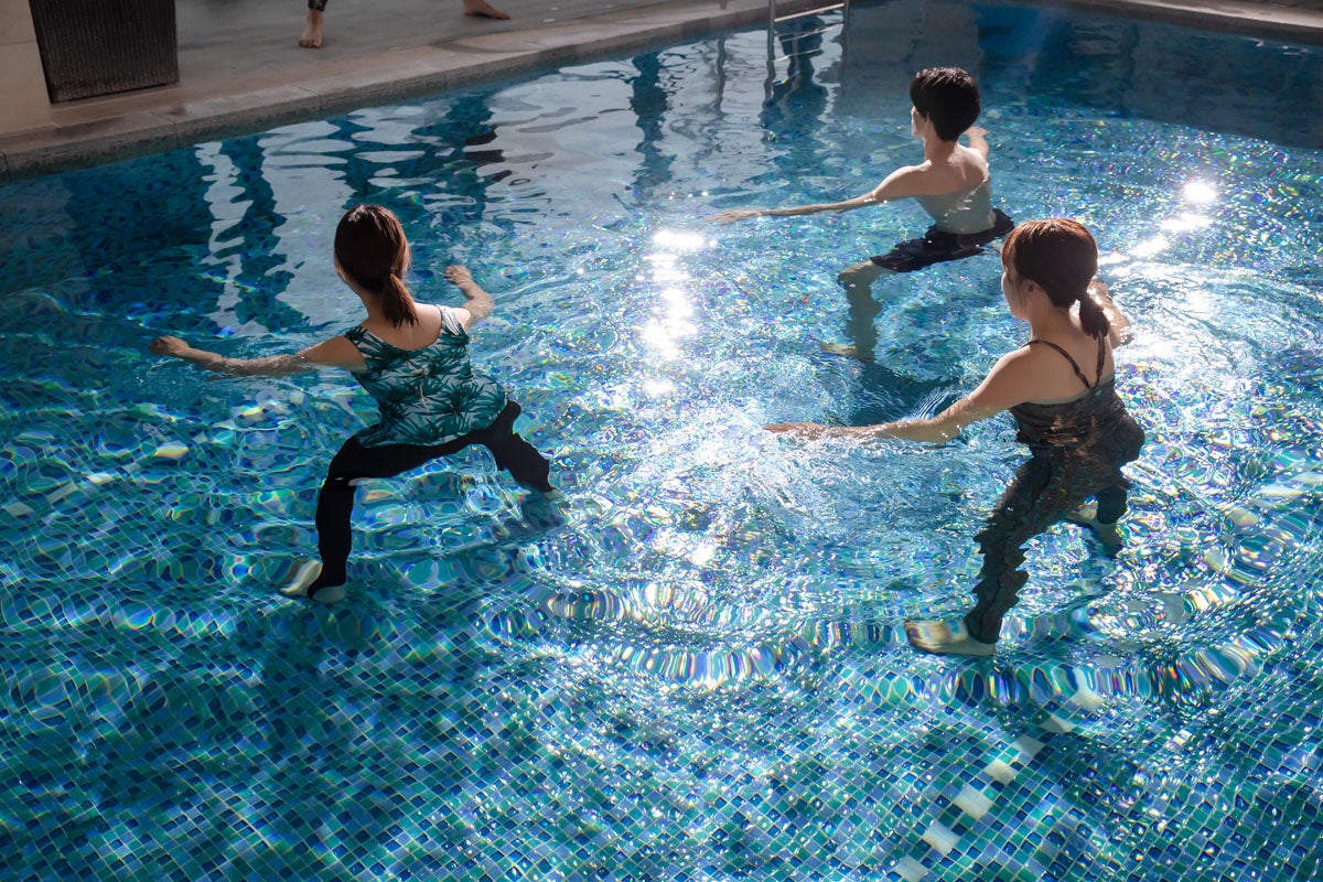 さらに、人気のSUPヨガや、瞑想を取り入れた調整系のアクアプログラム「アイチ&コンディショニング」、水中でエアロビクス運動を行う「アクアビクス」など、プールで行う各種レッスンも無料でご利用いただけます。