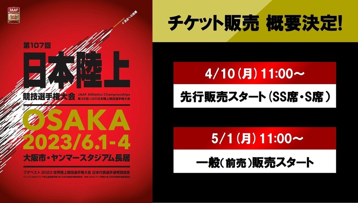 2023年6月1日(木)~4日(日)に大阪・ヤンマースタジアム長居で開催する「第107回日本陸上競技選手権大会」の特設サイト・チケット販売概要を公開いたしました!