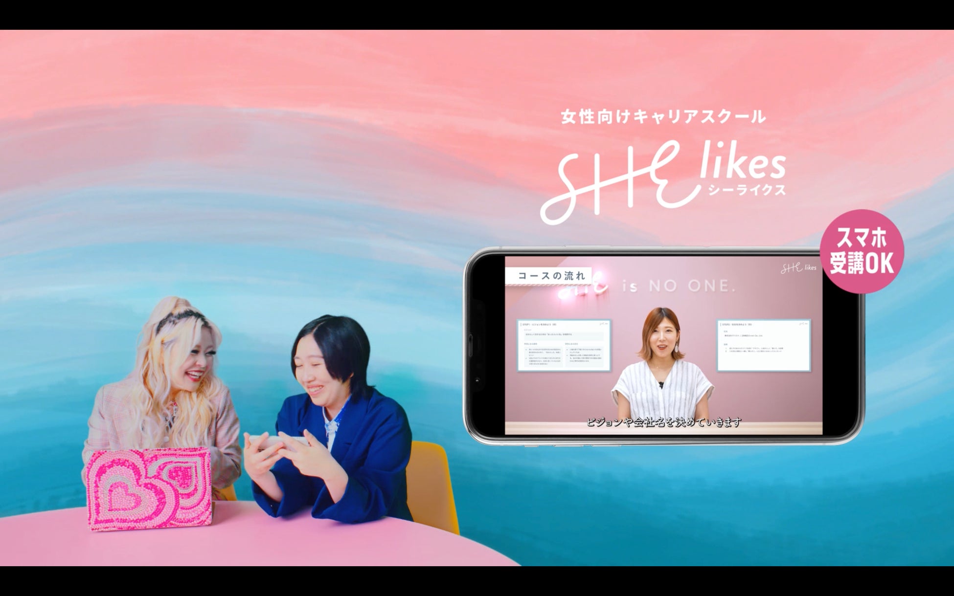 SHElikesは、時間や場所にとらわれずに働ける45以上の職種スキルが定額で学び放題の女性のためのキャリアスクールです。Webデザイン・Webマーケティング・ライティングなど、パソコンひとつで働けるデジタルスキルやクリエイティブスキルを幅広く学べ、私らしい働き方の実現を支援します。