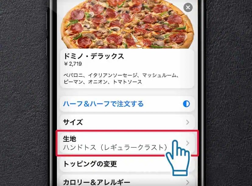 お好きな商品を選択後、プルダウンでクラストを選択してください。