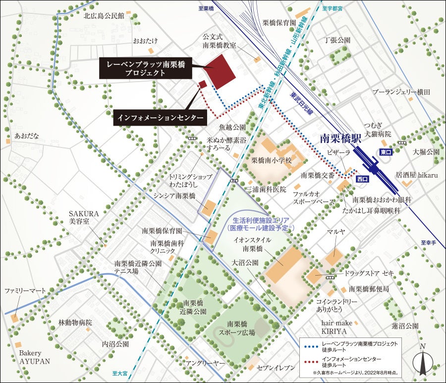 東武スカイツリーライン、東京メトロ半蔵門線・日比谷線、東急田園都市線への乗り入れで都心方面のアクセスが充実、始発駅でもある東武日光線「南栗橋」駅より徒歩10~11分。始発駅でもある「南栗橋」駅からは、座ってゆったりと朝の通勤通学ができます。大手町まで直通の利便性の高いロケーションです。