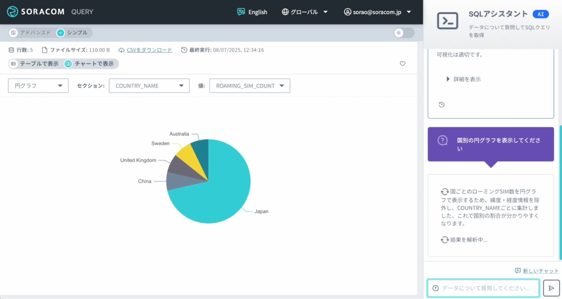 株式会社ソラコム(本社:東京都港区、代表取締役社長 CEO 玉川憲)は、2023年から一部のユーザーで先行利用を開始し、フィードバックをうけ、生成AIの活用などの機能を拡充してきたデータ分析基盤サービス「SORACOM Query(ソラコム クエリ)」を、2025年7月16日より正式に提供開始します。