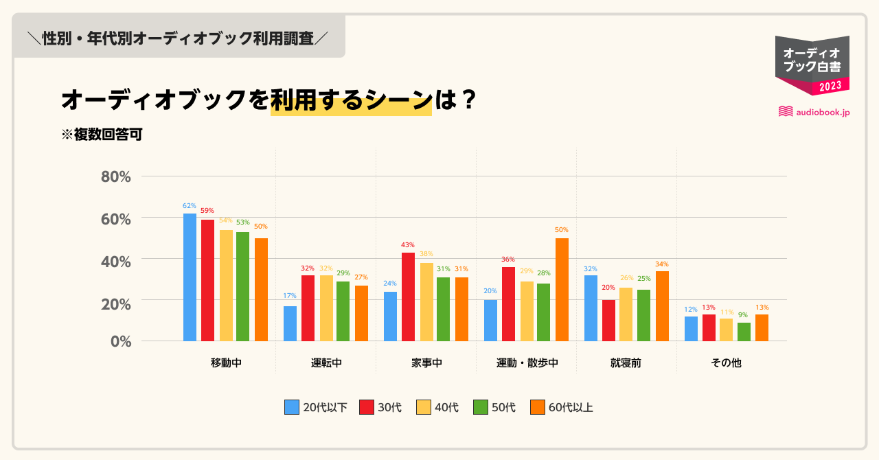 図2. 「性別・年代別 オーディオブック利用調査」(自社調査/期間:2023年3月5日〜2023年3月日)