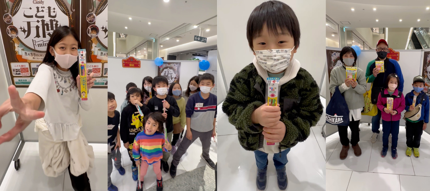 ◆2月23日には神戸ハーバーランドで開催された「こども万博」にてリアルイベントとしてインフルエンサーになりきる「こどもはみがき先生体験」を開催。約50名のお子様達が参加し「こどもはみがき先生」として歯みがきの知識を伝えました。