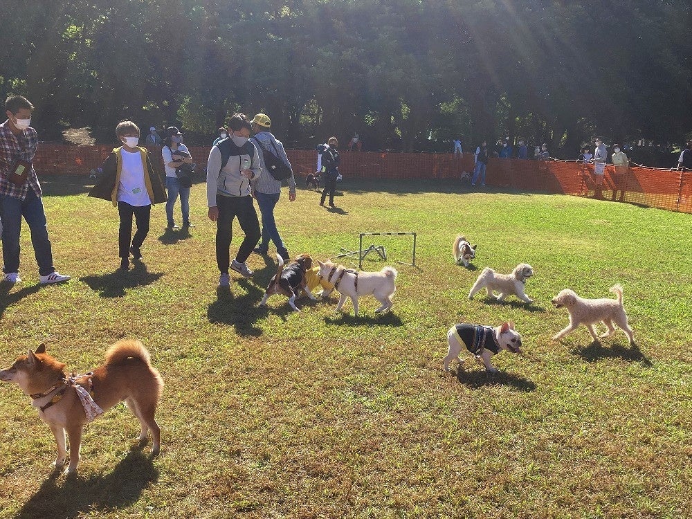 公園に期間限定のドッグラン会場を特設する本企画は、春と秋の年2回開催しており、多くのペット連れでにぎわう大好評のイベントです。