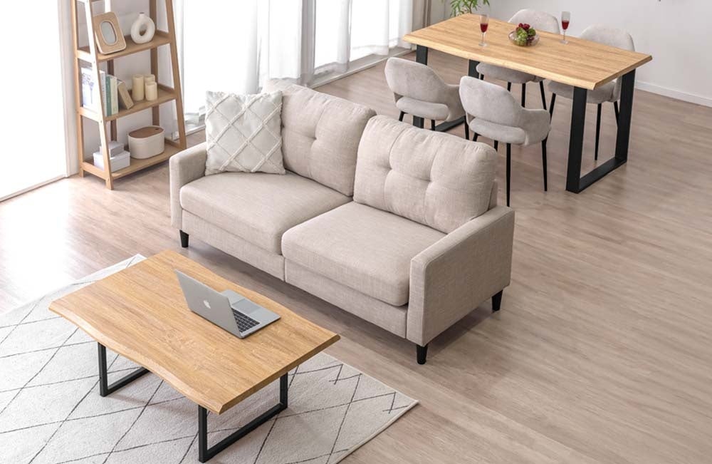 本製品と同じデザインのダイニングテーブルも展開しており、ダイニングとリビングでテーブルのテイストを揃えることで、お部屋に統一感が生まれ、手軽に洗練された空間を演出できます。