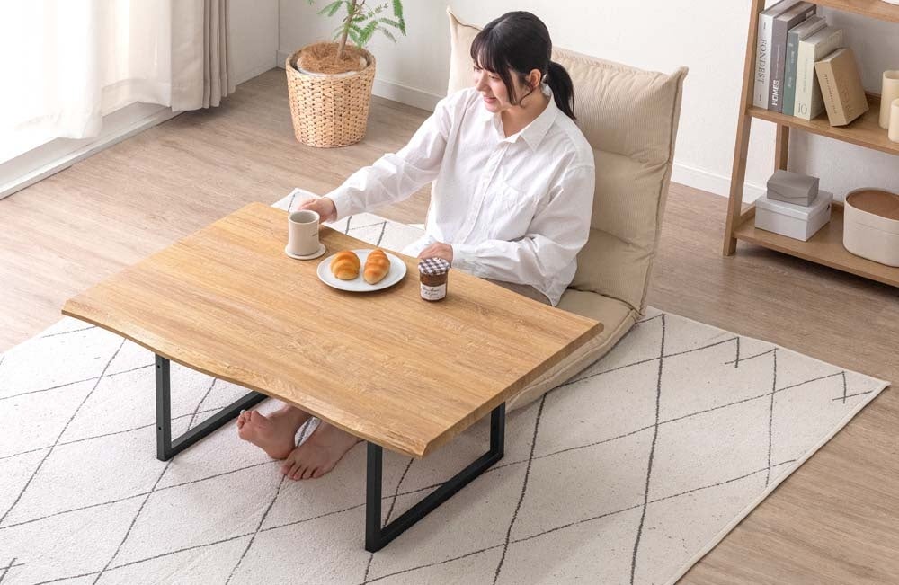 ロースタイルは座椅子と相性が良く、一人暮らしの方やワンルームにお住まいの方にぴったり。食事や軽作業、くつろぎの時間まで、これ一台で快適に過ごすことができます。また、高さを抑えることで、お部屋に圧迫感を与えず、ゆとりのある印象を演出できます。