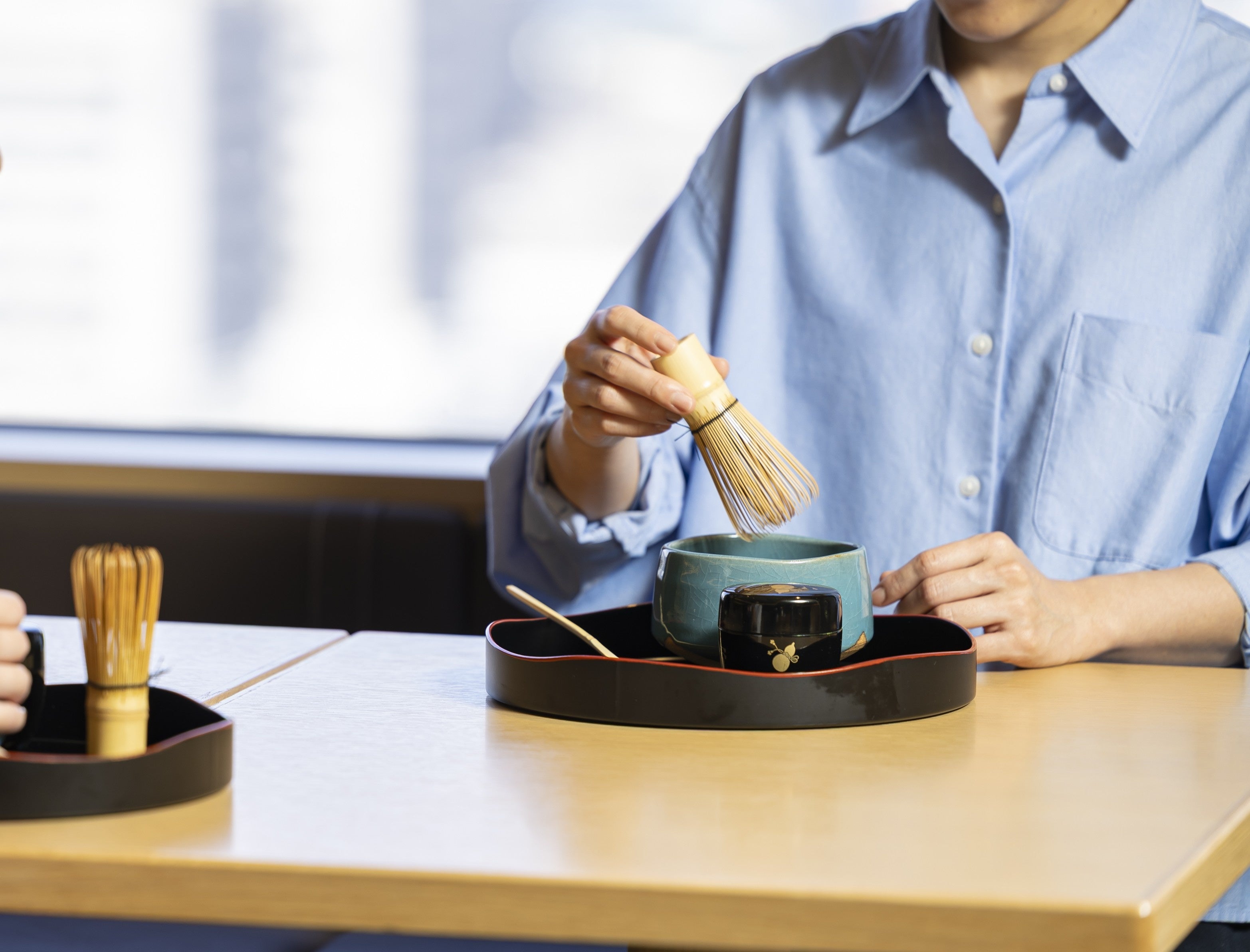 エグゼクティブフロアにご宿泊のお客さまだけがご利用いただけるクラブラウンジにて、ティータイムのご提供時間に体験いただけます。アンバサダーが抹茶の点て方を丁寧に解説いたします。