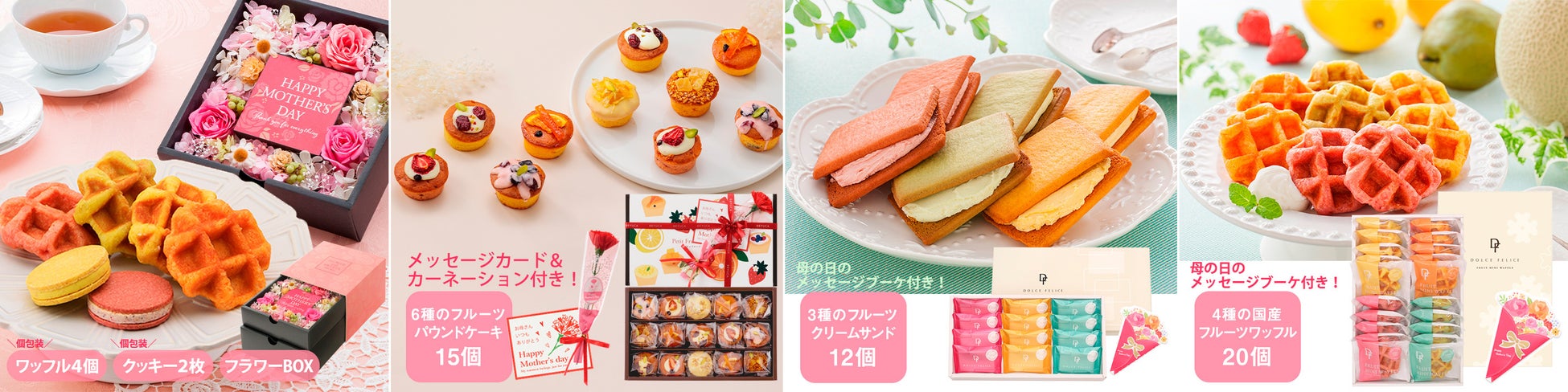 一人でも多くのお客様に笑顔と幸せをお届けしたい、そんな想いがブランド名に込められたDOLCE FELICE(ドルチェフェリーチェ)では、 母の日にぴったりな華やかなスイーツをご用意いたします!