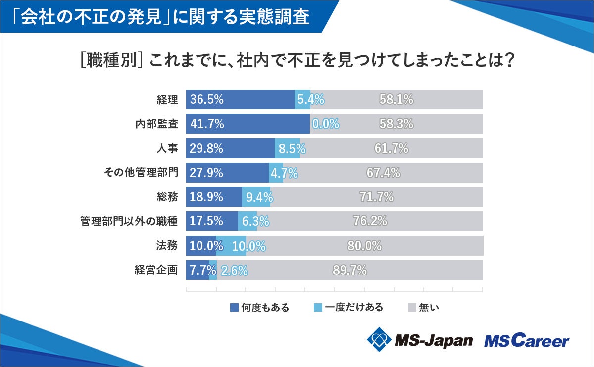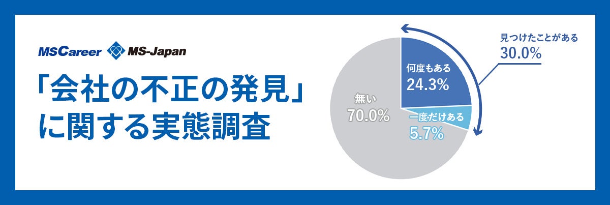 この度、MS-Japanが運営する管理部門・士業の総合転職サービス「MS Career(エムエスキャリア)」は、【「会社の不正の発見」に関する実態調査】を発表いたしました。