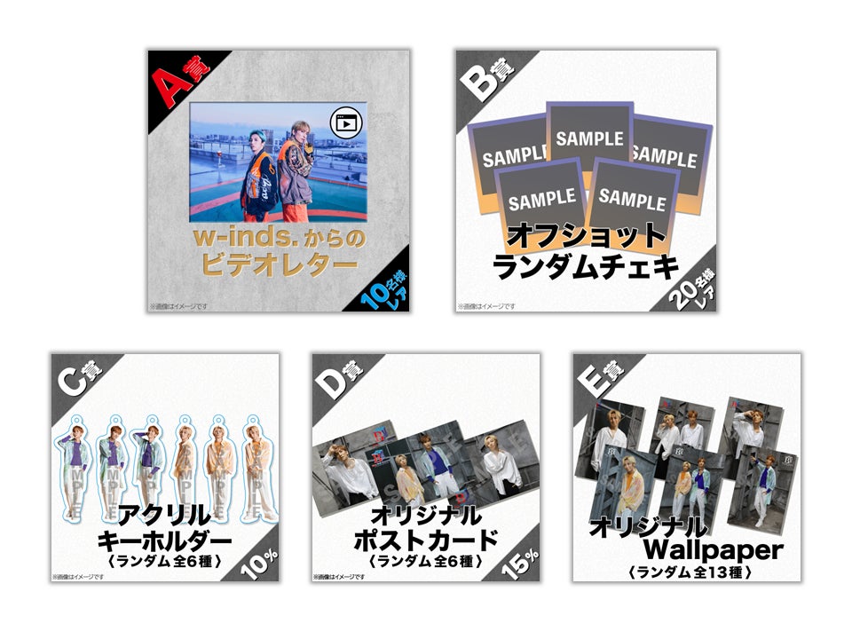 このくじは、株式会社Tixplusが提供しているサービス『くじプラ』を活用し、『w-inds.からのビデオレター』や各公演にて撮影した『オフショットランダムチェキ』などの豪華賞品をご用意しております。
