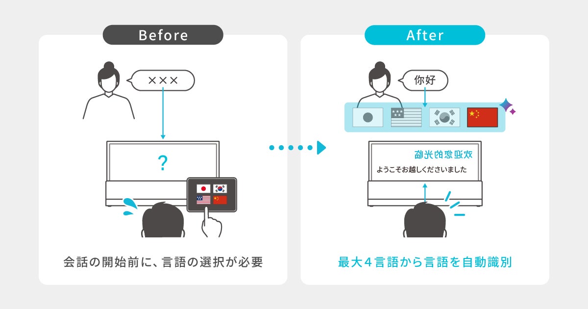 これまでの多言語翻訳デバイスは、会話を始める前に「言語を選択する」という操作が必要でした。今回のアップデートは、言語を切り替える際に発生していた翻訳までのタイムラグの課題を軽減します。