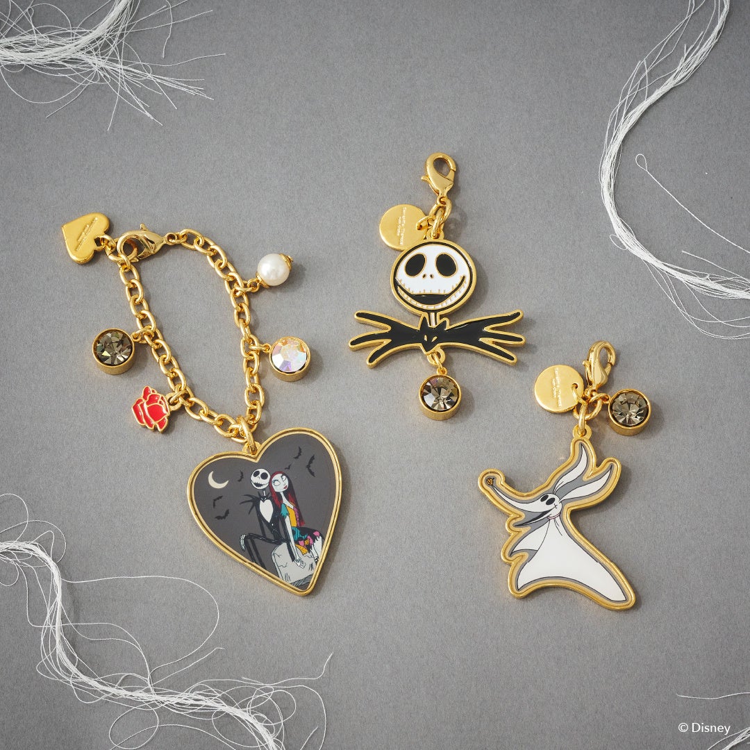 「ジャック」、「サリー」、「ゼロ」のアートにストーンやパールを加えたチャームが3 種類発売。お財布やバッグとセットで使えて、より華やかに。