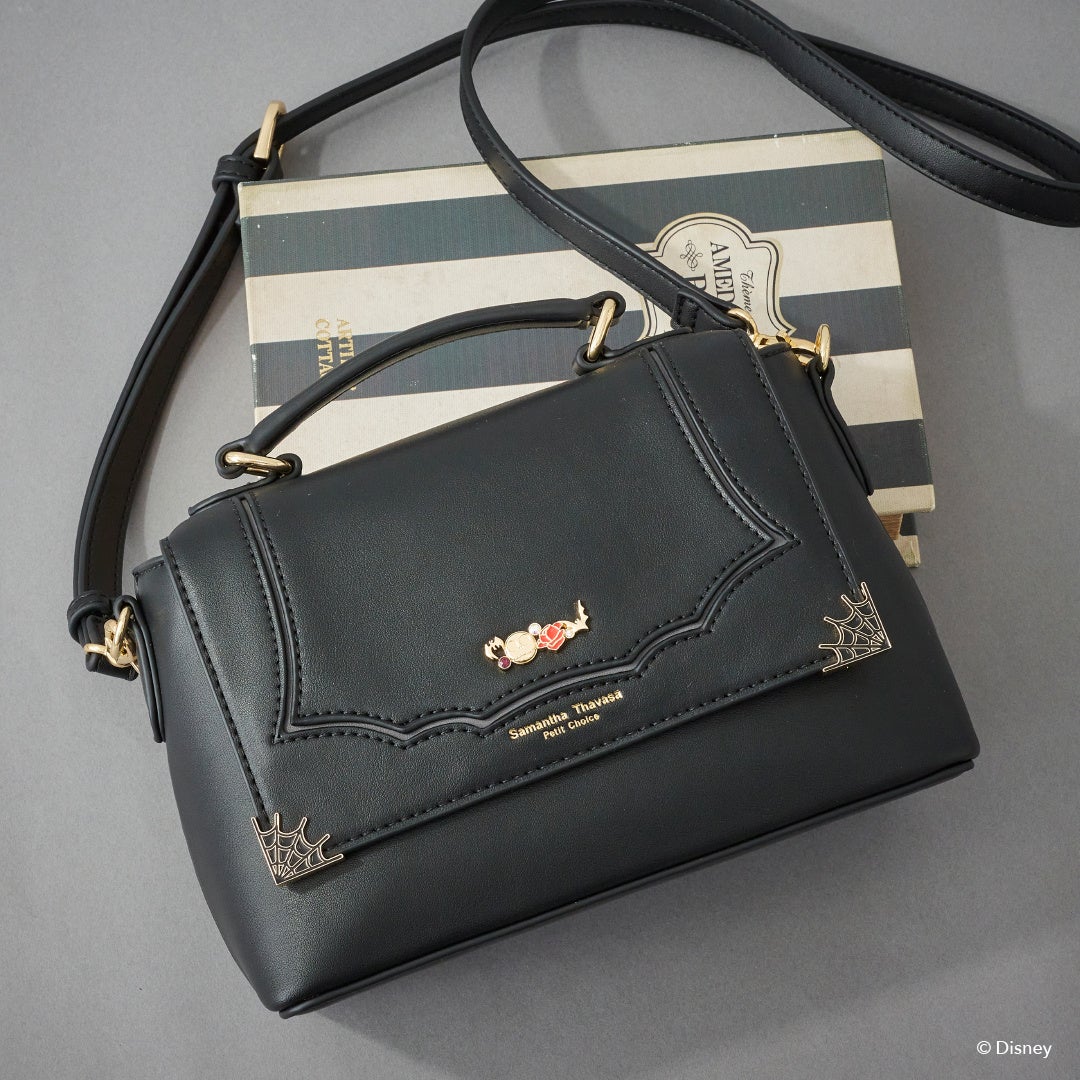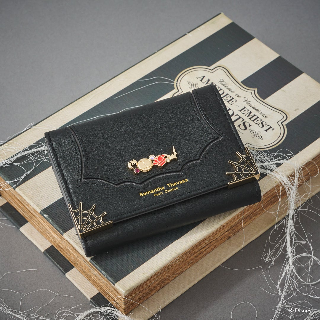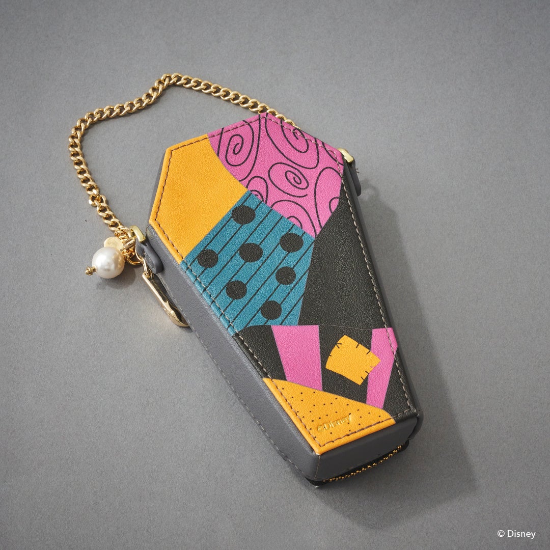 フロント部分に蜘蛛の巣と「ジャック」の顔やバラなどのモチーフをデザインに落とし込んだオリジナル金具がポイント。背面に「ゼロ」の型押しを施し、さりげなく世界観を表現。
