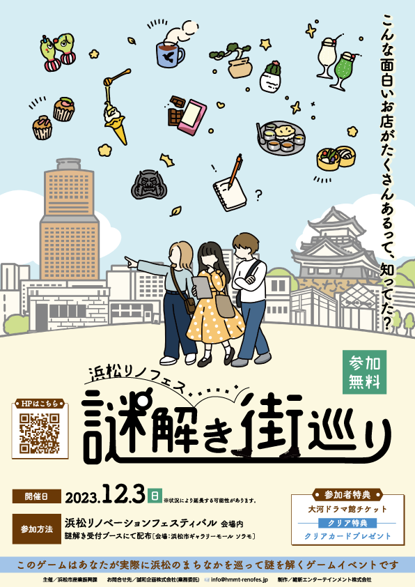 浜松のまちなかにある、リノベーションまちづくりをきっかけに生まれ変わった店舗に隠された謎を解きながら街巡りをする、体験型・謎解きをするゲームイベント