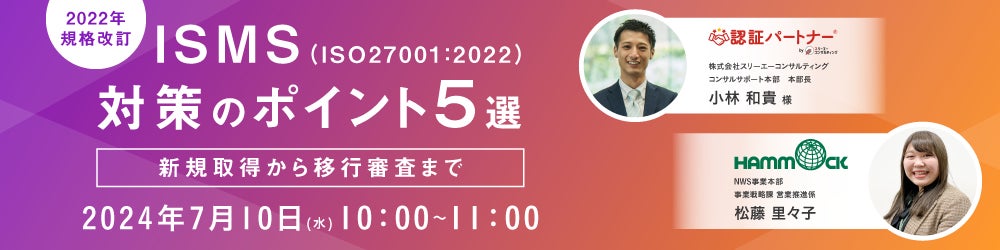 株式会社ハンモック(本社:東京都新宿区、代表取締役社長:若山 大典、以下、ハンモック/ 東証グロース:173A)は、ISMSを取得している企業のISMS管理担当者100名を対象に、企業のISMS新規格に関する実態調査を実施しました。