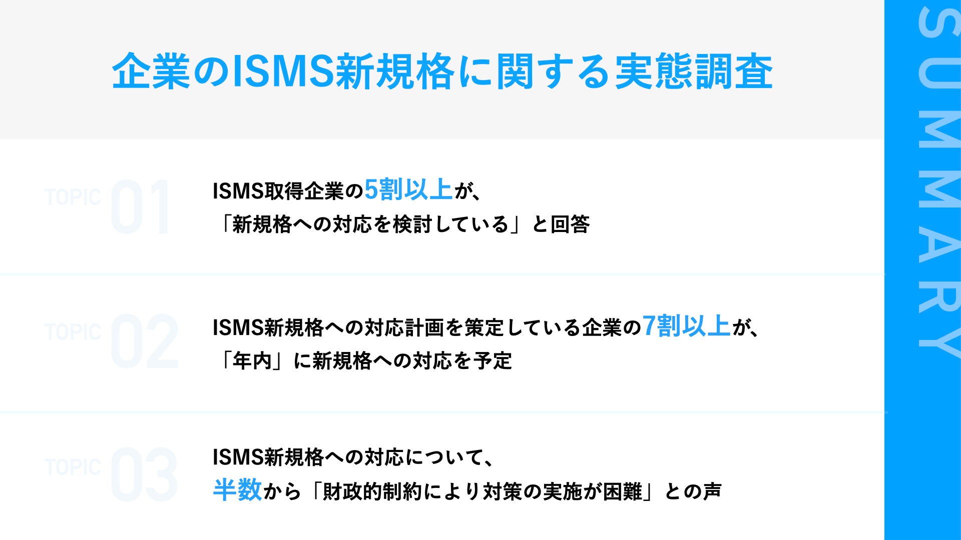 今回は、ISMSを取得している企業のISMS管理担当者100名を対象に、企業のISMS新規格に関する実態調査を実施しました。