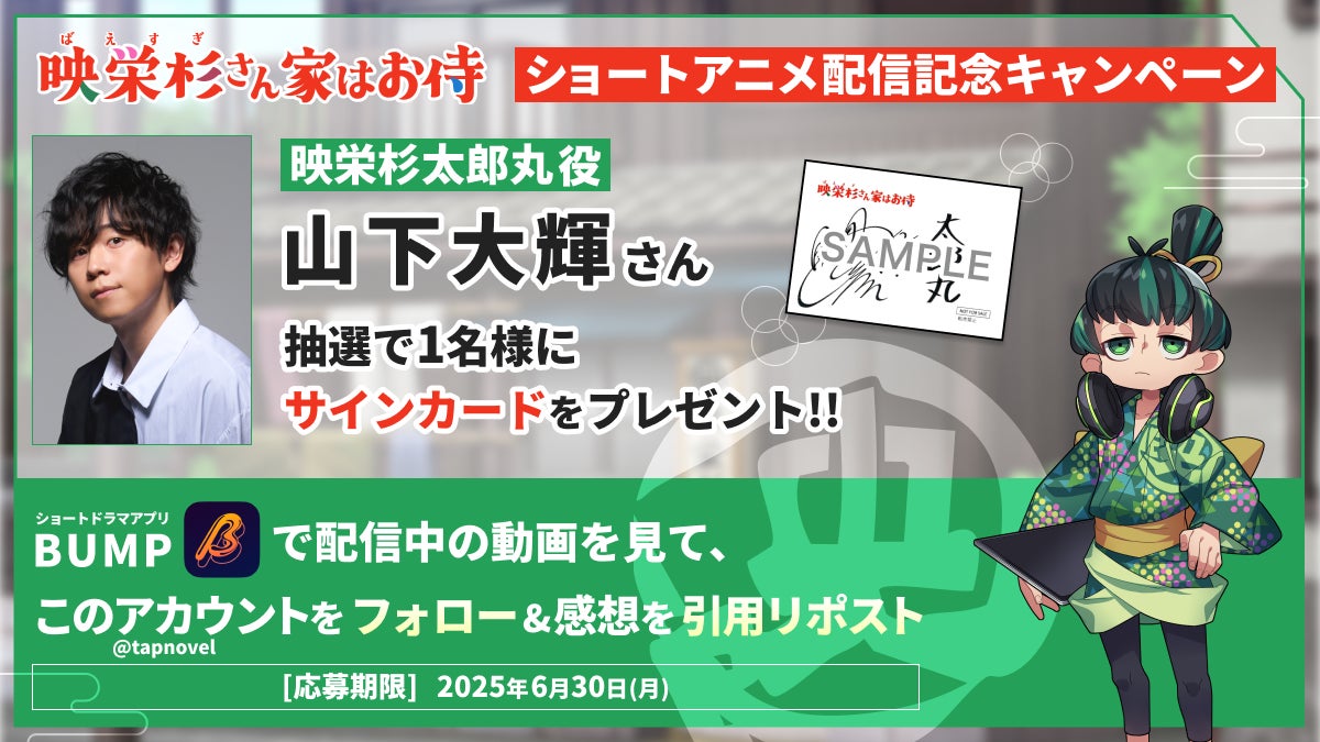 ショートアニメ『映栄杉さん家はお侍』は、ショートドラマ・アニメを展開するプラットフォーム「BUMP」にて独占配信いたします。ぜひお求めください。