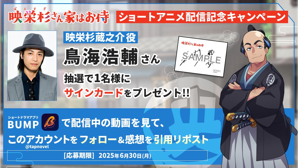 鳥海浩輔・行成とあ・丸岡和佳奈・山下大輝 話題の声優たちを起用!松竹×TapNovel『映栄杉さん家はお侍』ショートアニメ化「BUMP」独占配信開始!!