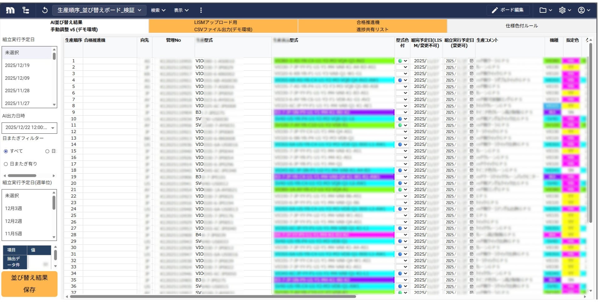 MotionBoardのAIウィジェットを活用して生産計画ダッシュボードを作成。生産計画シミュレーションの自動化や直感的な並べ替えなど、BIツールの枠を超えた「業務アプリケーション」として活用しています。