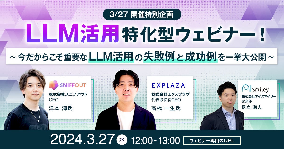 3/27 開催特別企画】LLM活用特化型ウェビナー!失敗しない生成AI導入体験へ~今だからこそ重要なLLM活用の失敗例と成功例を一挙大公開~