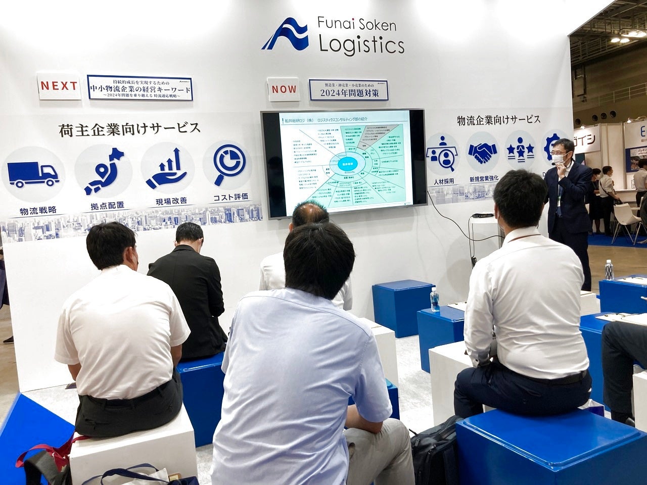 なお、展示会の会期中、船井総研ロジのブース内では全24回の物流セミナーを開催し、2024年問題をはじめ、ESG(脱炭素)・トラック事故ゼロなどをテーマに船井総研ロジのコンサルタントが講演いたしました。