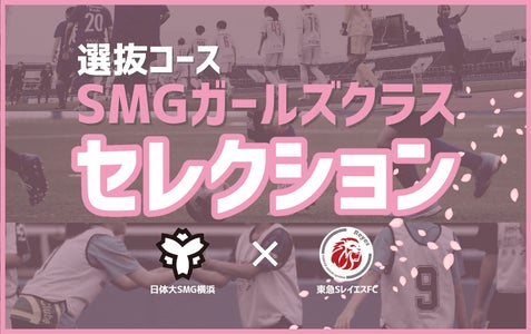 この度、SMGミライ応援プロジェクトの一環として、女子サッカー選手の競技力向上を目的に、日体大SMG横浜(なでしこ1部リーグ所属)と東急SレイエスFC(神奈川県3部リーグ所属)の両者がタッグを組み、たまプラーザ校にて選抜コースSMGガールズクラスの新設が決定いたしました。