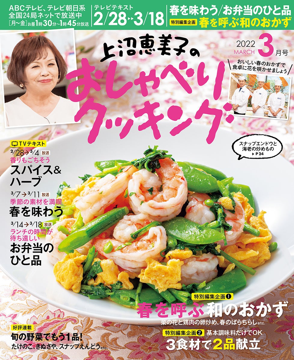 2月28日~3月18日までのレシピを掲載! 月刊テレビテキスト「上沼恵美子のおしゃべりクッキング2022年3月号」発売!