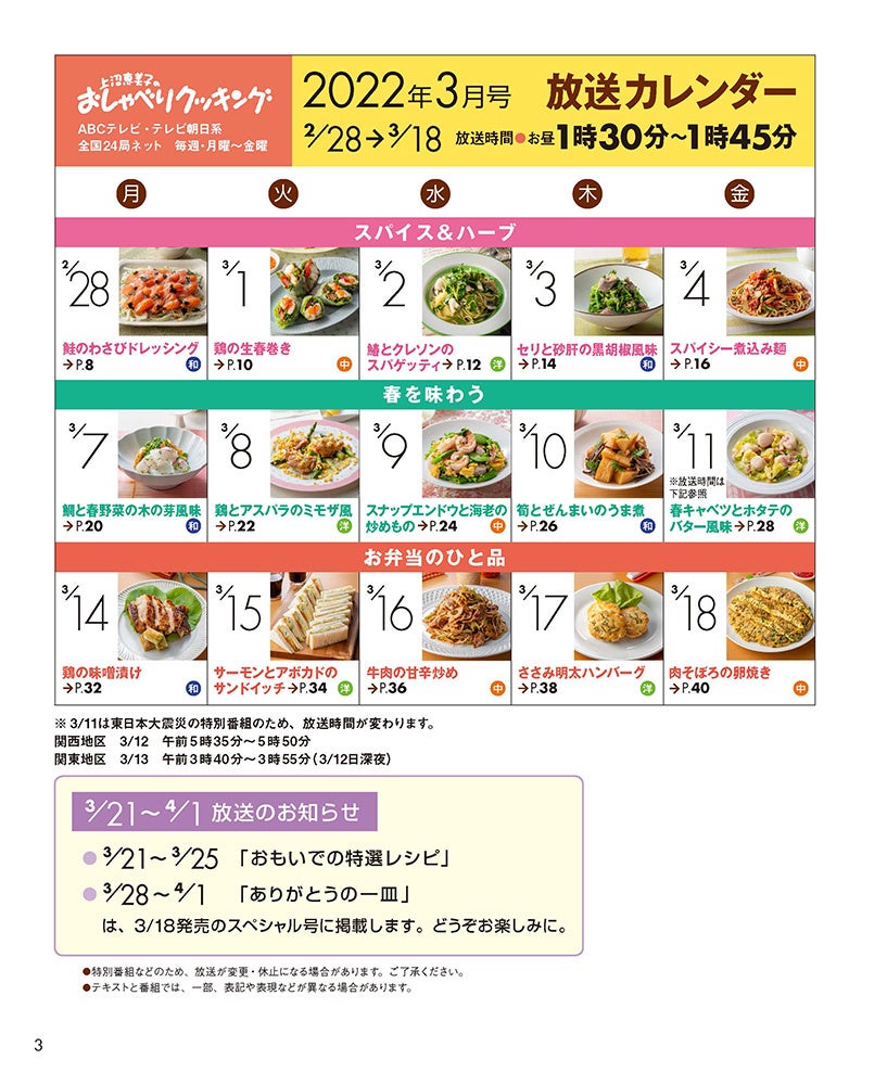 - 2月28日-3月18日放送の3週分のレシピを掲載!