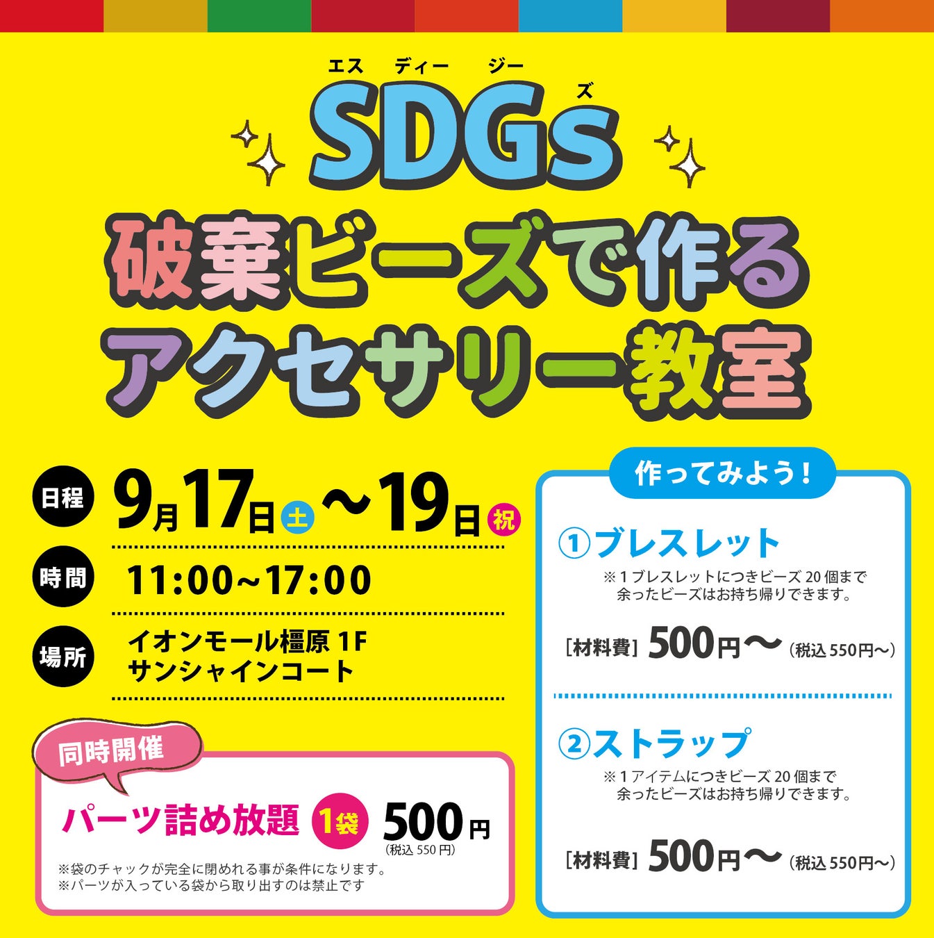 ビーズ&アクセサリーパーツショップPARTS CLUBイオンモール橿原店、SDGs「廃棄ビーズ」で作るアクセサリー教室を9/17(土)18(日)19(月)3日間のみ開催!